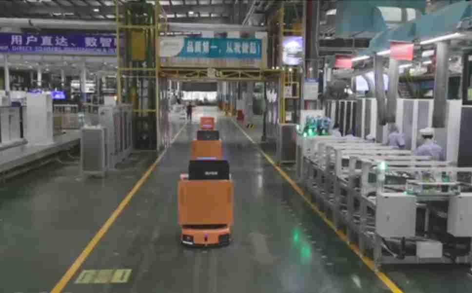 为车载冰箱物流配送打造的智能解决方案,,包含产中物流通过潜伏举升AMR搬运至线边,,产后成品物流智能仓储,,流程包含产中物流智能齐套入库,,,线边安灯叫料AMR智能配送至线边,,,成品入库、、、、出库,,,通过无人堆高车机器人,,,,智能仓储管理替代人工作业管理,,,,实现更高存储、、、、更高效率、、、、更具柔性化的解决方案。。。