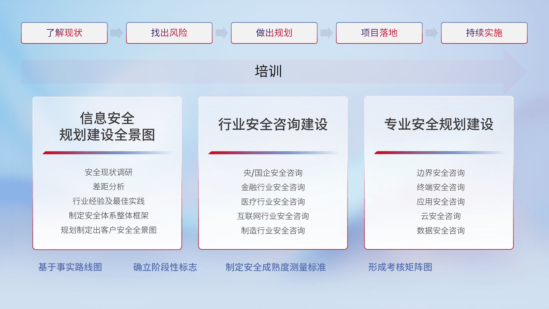 梳理客户信息安全现状调研、、差距分析结果,,,,结合行业先进经验及最佳实践,,,制订客户的信息安全管控体系总结架构,,,最终形成一个完整的客户信息安全规划与建设的全景图。。。。