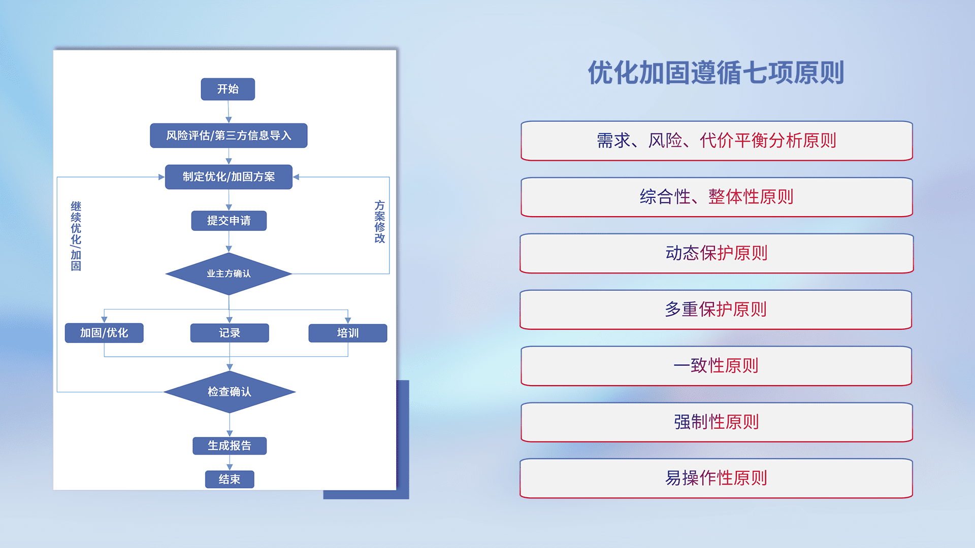 最大程度利用现有资产,,,,对评估发现的问题进行封堵与整改,,防止漏洞被利用,,,,提升整体网络安全性,,,,为客户带来高标准的优化加固服务。。