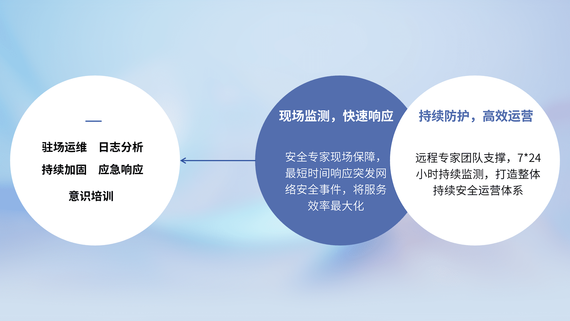 针对客户行业特性,,提供专属的一站式安全管理服务,,帮助客户全面感知网络空间威胁,,,通过安全专家的线上、、、、线下防护支持,,,实现风险闭环,,,,将安全保障常态化,,,,为客户打造常态化安全运维运营服务。。。